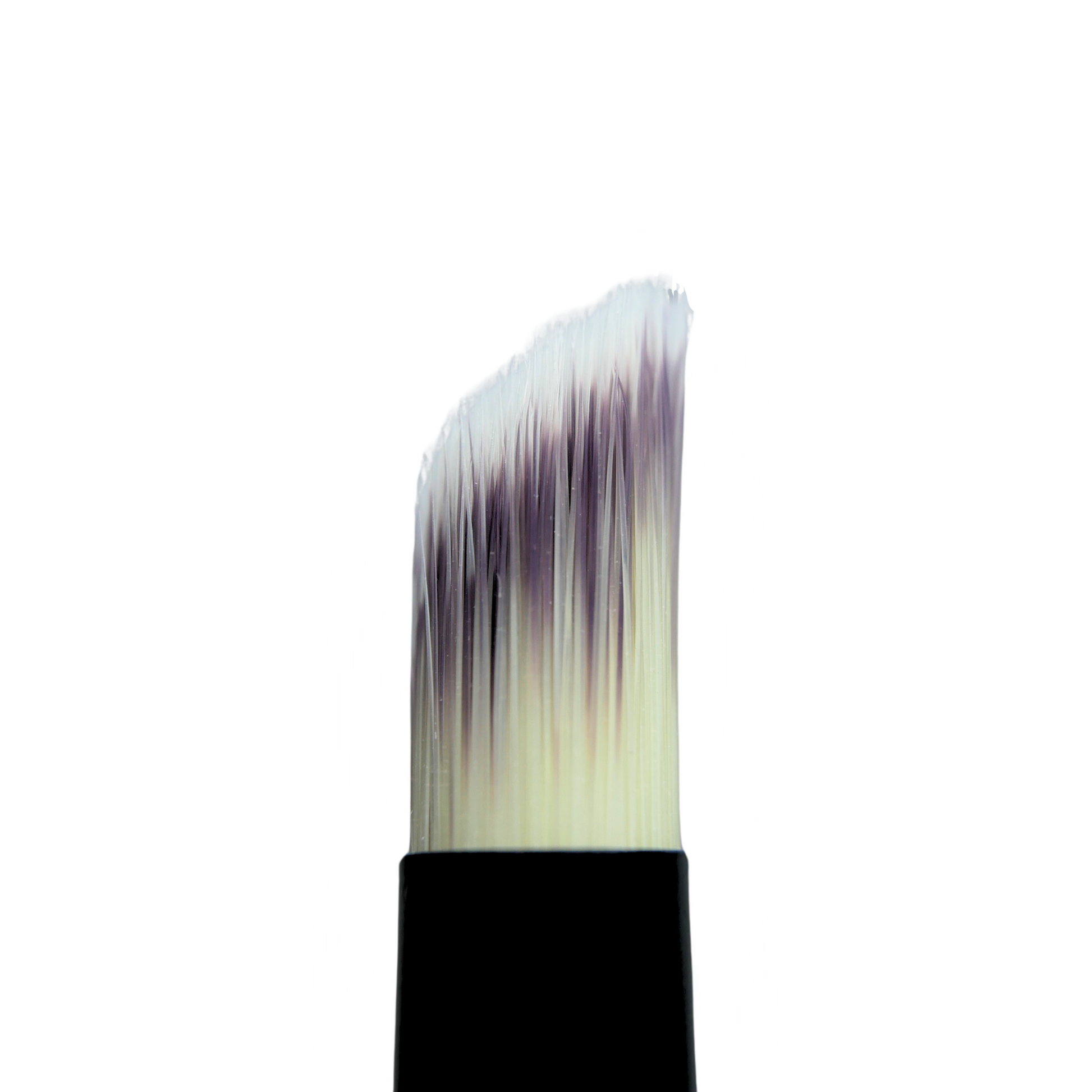 Angled Pigment is the holy grail of pigment brushes. Soft, angled synthetic bristles make for a concentrated application. The taper allows for blending for the most seamless edges in your ombrés.