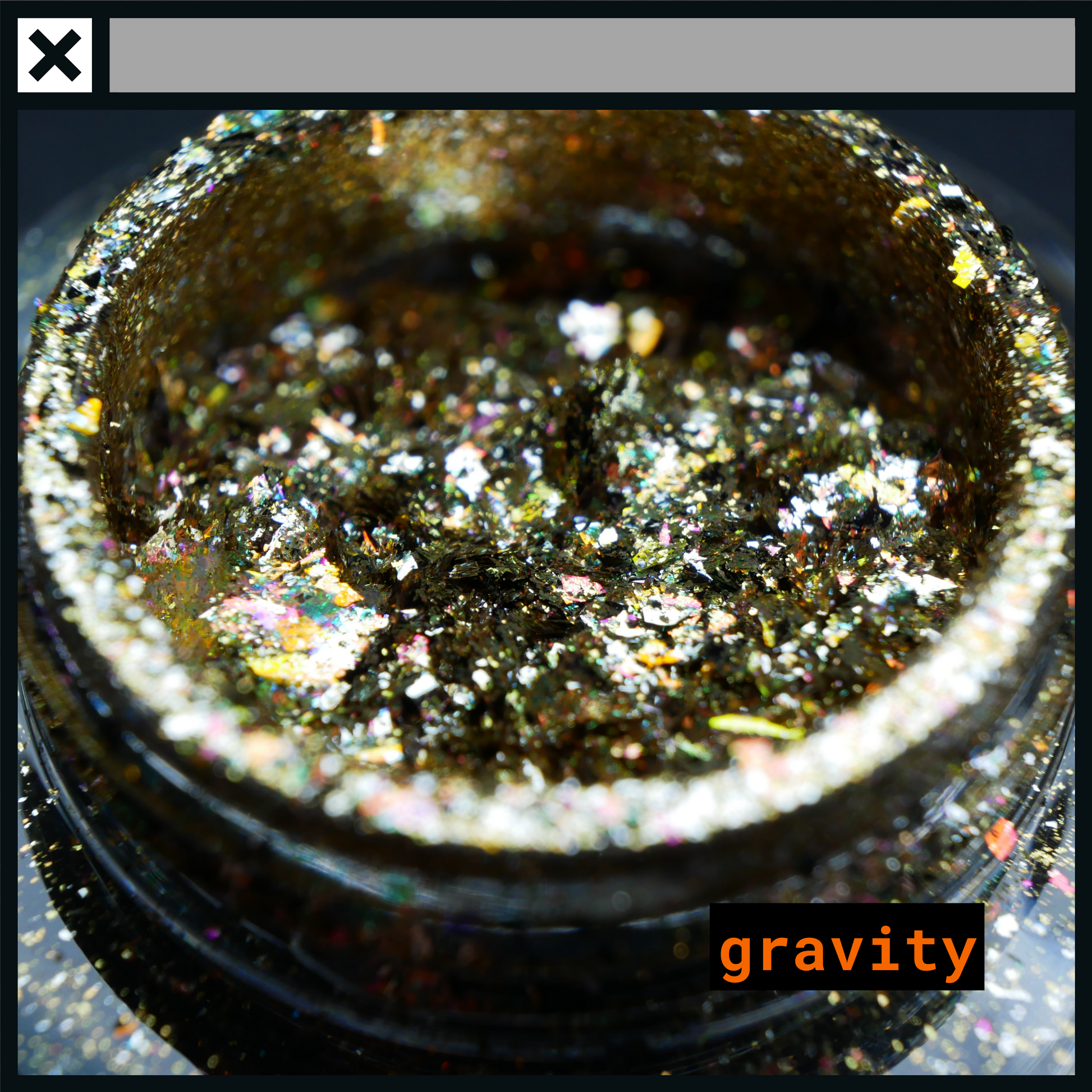 Gravity is a soft champagne gold that reflects blue, pink, and orange depending on your base.
