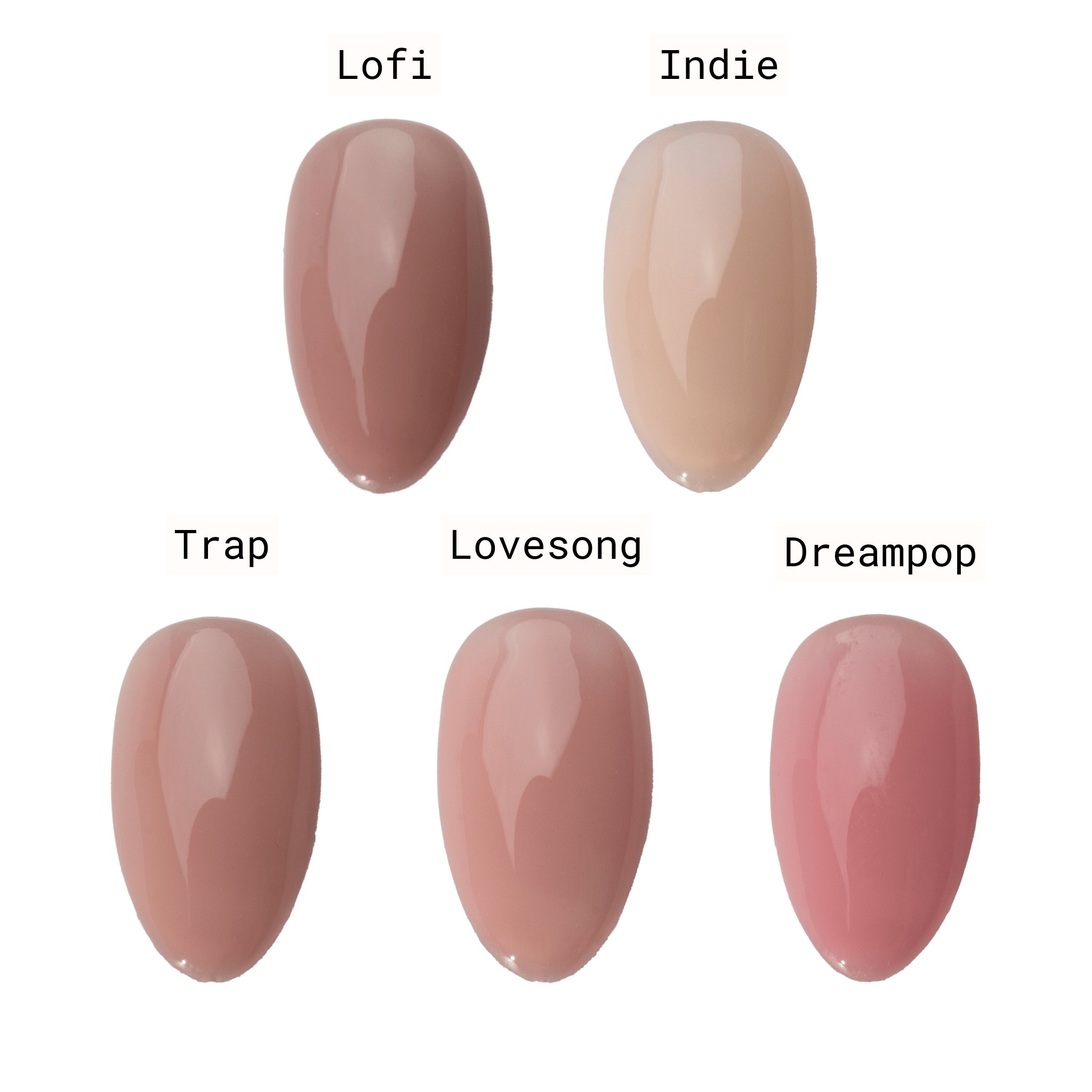 Greatest Hits Vol. 1 is your everyday essentials playlist: 5 soft, nostalgic nude tones designed to match your mood. Inspired by music genres that evoke emotion and timeless cool, these sheer tints can be worn solo, layered for pigment depth, or used as a flexible base under gel color or nail art.