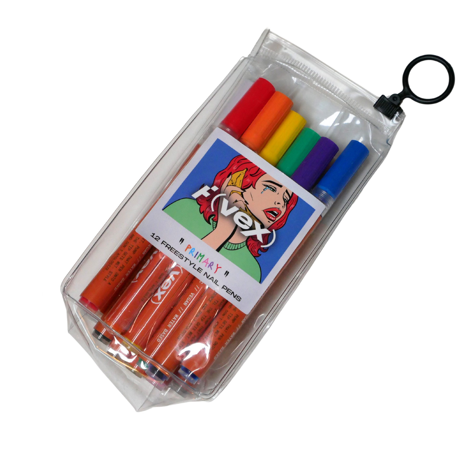 Freestyle Nail Art "Primary" Pens. These water-based, non-toxic paint pens dry lightning fast and allow you to have full control and flexibility while creating designs on your nails. The firm felt tip provides precise control and are specifically designed to distribute paint in a steady stream.