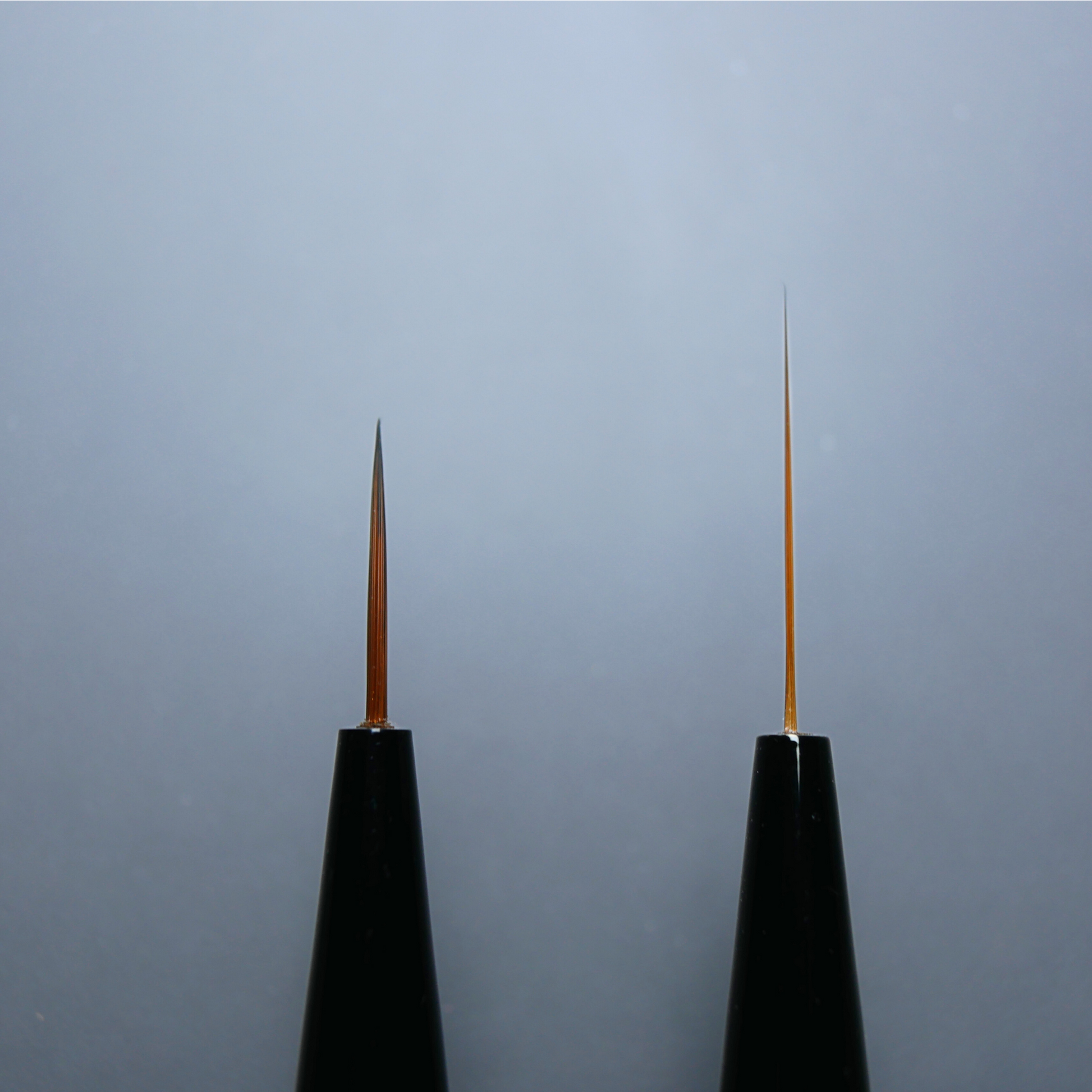 Liner 8mm is a short bristled, medium density brush. It's ideal for thicker line work, outlining characters, or picking up larger dollops of high viscosity 3D art gels like Pudding Gel. Its tapered shape gives you high precision while drawing leaves or petals and prevents lower viscosity formulas from balling up on the tip of the brush.