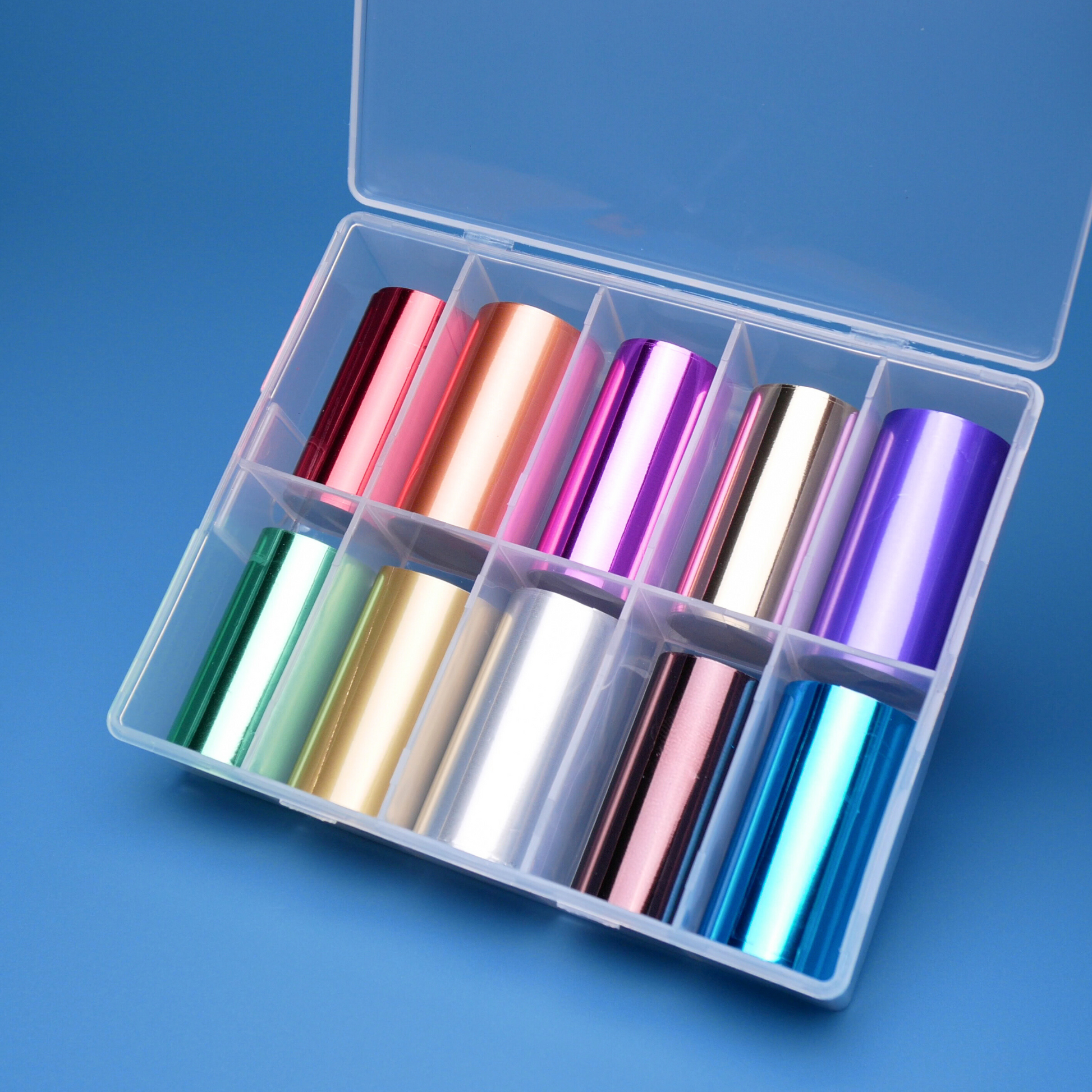 The classics in color! Multi Color mirror finish transfer foils for all of the isolated colored looks without the messy powder. Easy to trim and comes with a clear storage box to help you stay organized!