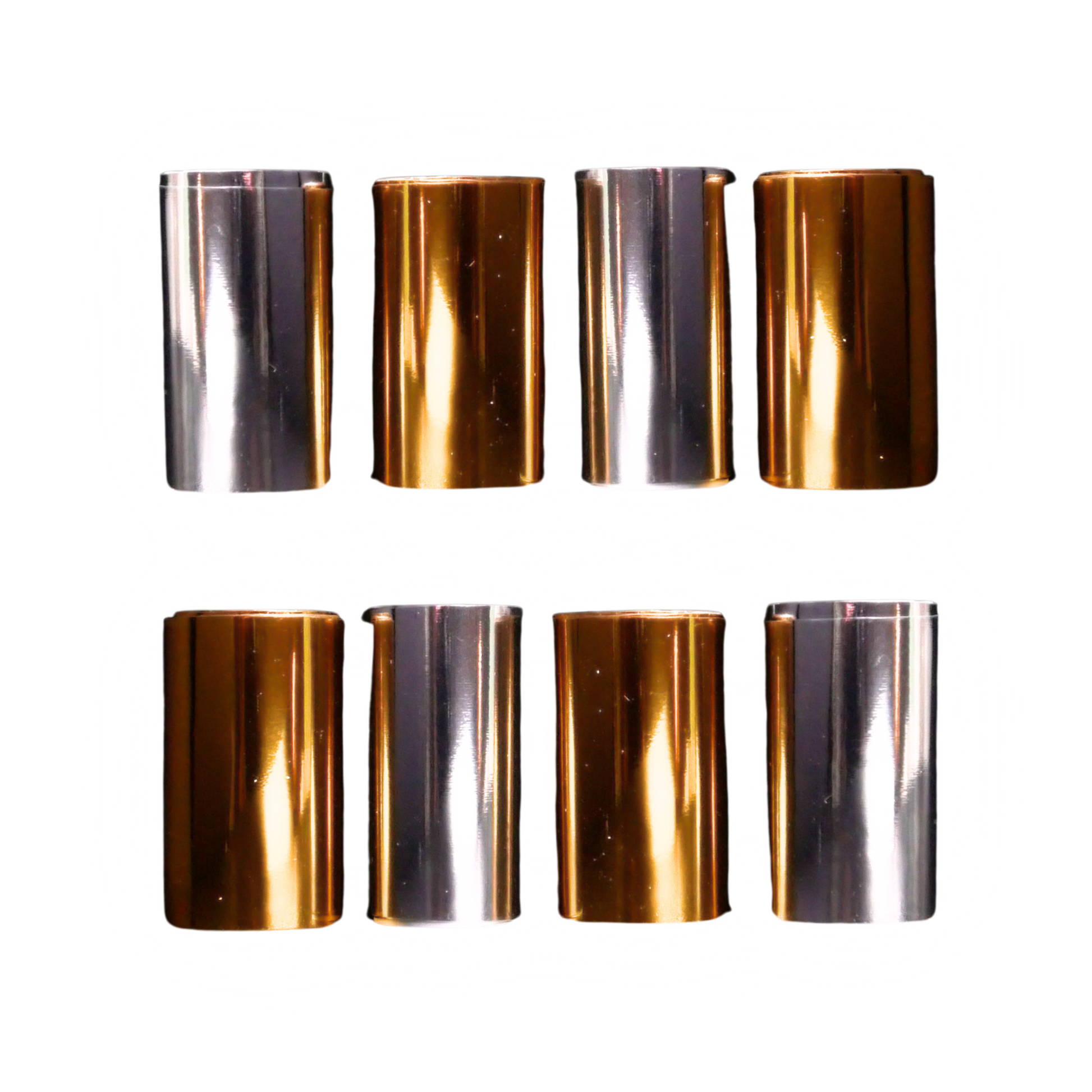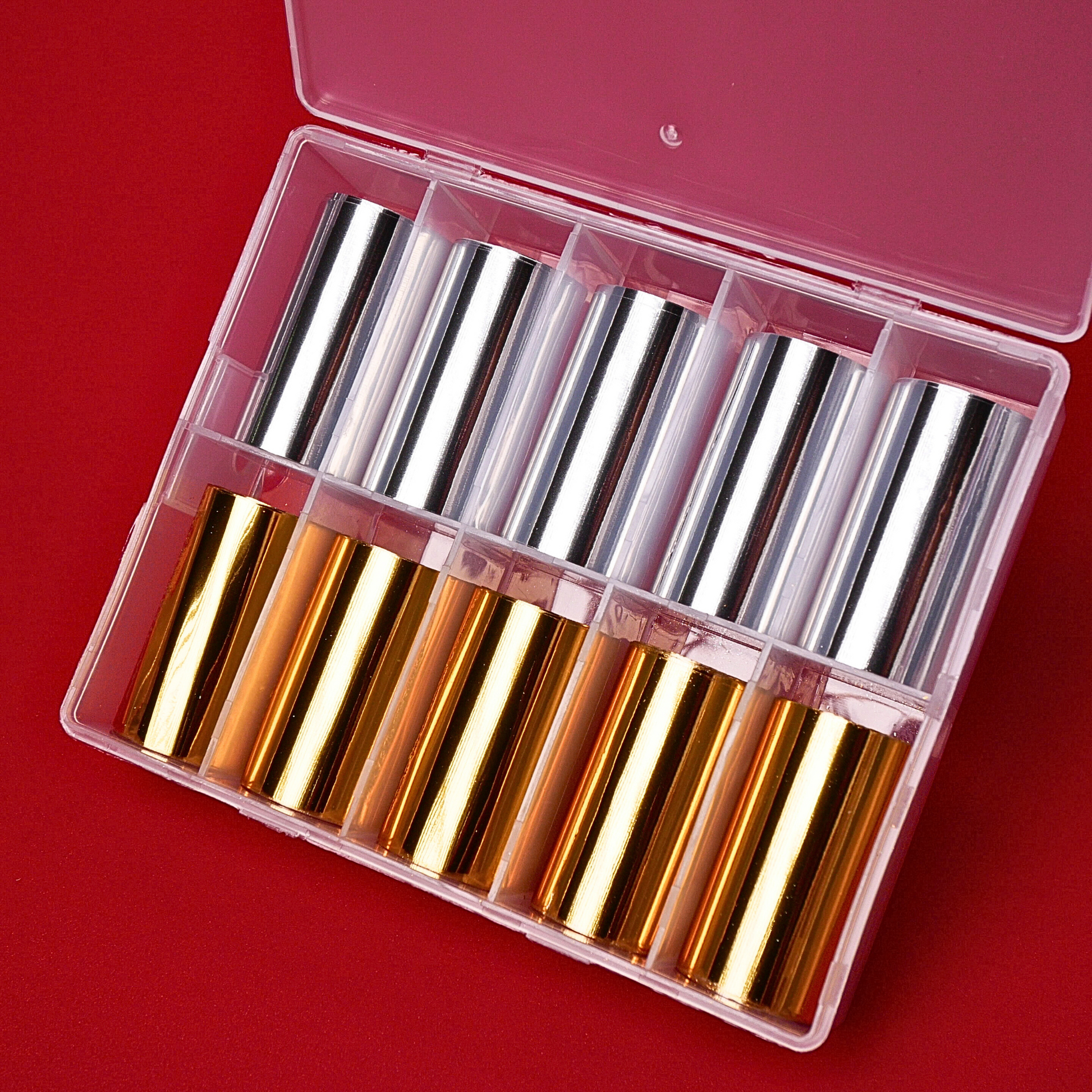 The classics in bulk so you can keep chromin' on! Gold and silver mirror finish transfer foils for all of the isolated chrome looks without the messy powder. Easy to trim and comes with a clear storage box to help you stay organized!