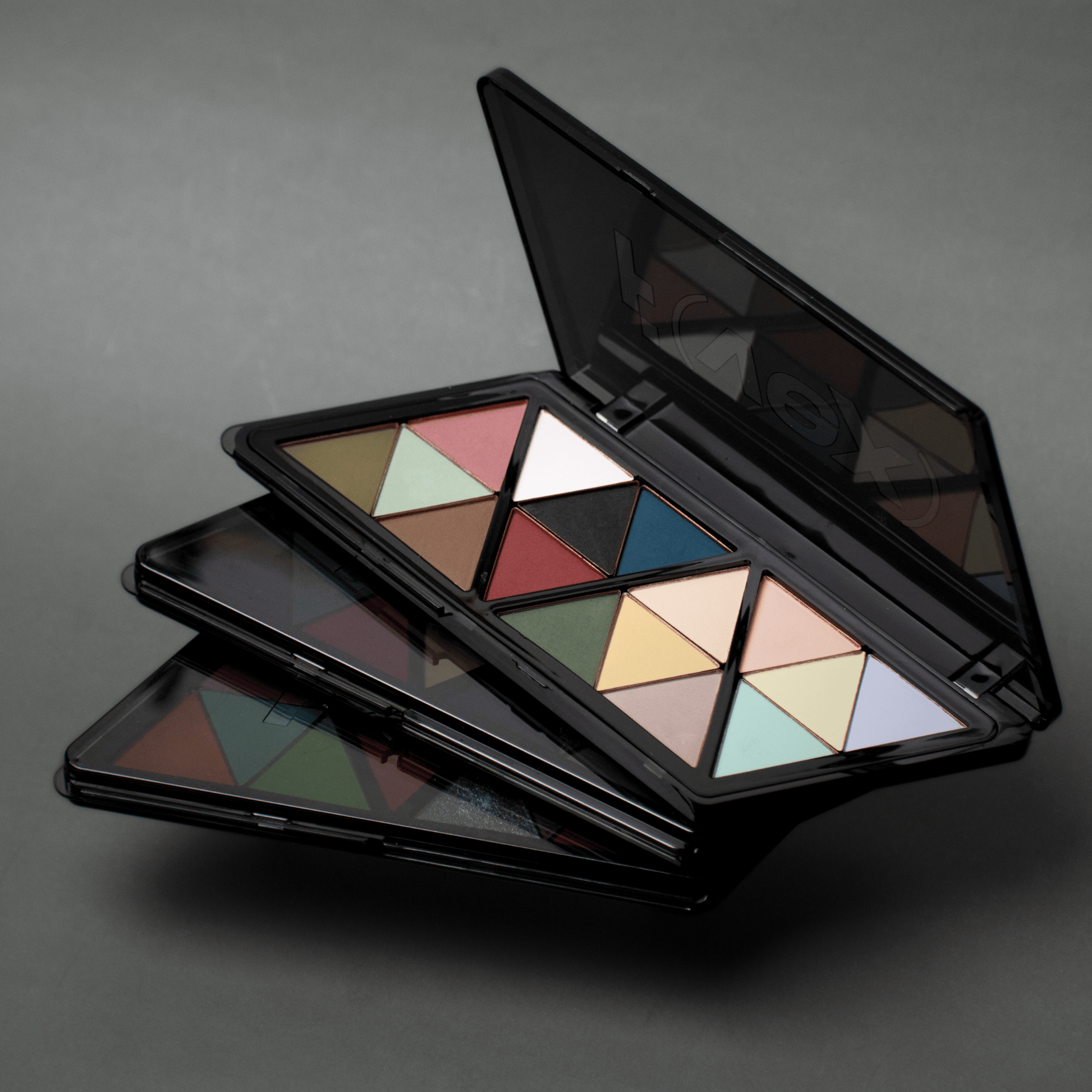 Crafted from glossy smoked graphite ABS, the palette is lightweight, travel-friendly, and built for daily studio use. Pressed pigment refill pans sold separately.