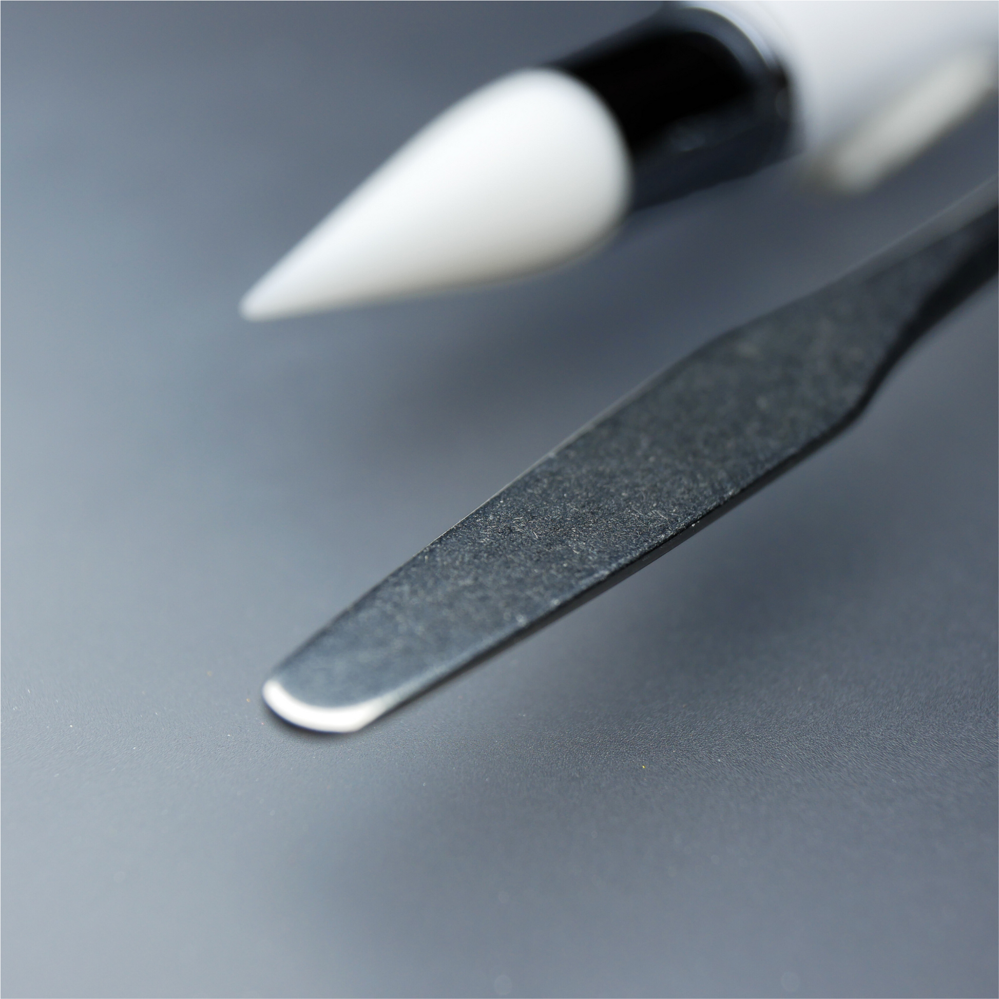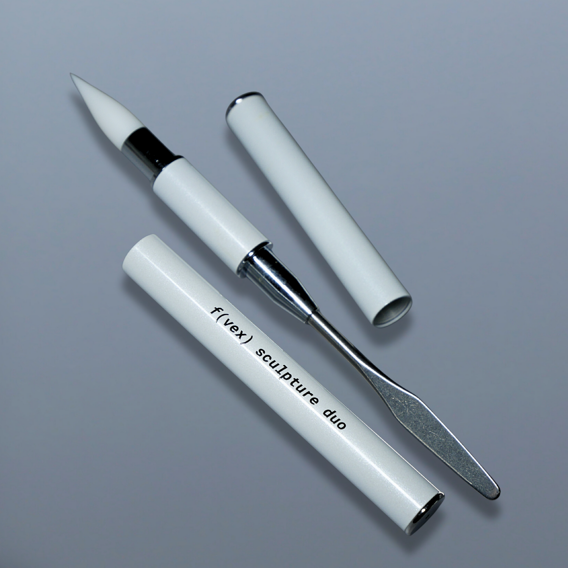 3D nail art lovers rejoice! Sculpture Duo was made with love just for you. This dual sided sculpting tool includes a tapered spatula end for scooping and shaping product and a large pointed silicone end for manipulating SuperSculpt and other 3D sculpting gels. Both sides come capped with a matching white pearl cap. The body of this tool is encased in an aluminum tubing with a white pearl coating for extra pristine e s t h e t i c s.